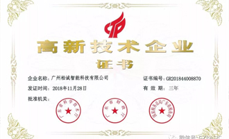 日前,柏诚继2001年以来,再次荣获由广东省科学技术厅、广东省财政厅、国家税务总局广东省税务局颁发的“高新技术企业”证书,证书编号为GR201844008870。